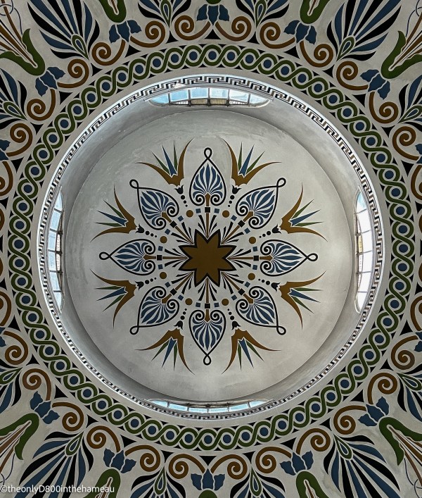 This is a view from below of the elegantly decorated dome. The image has just been cropped and straightened: it really does look this pristine.