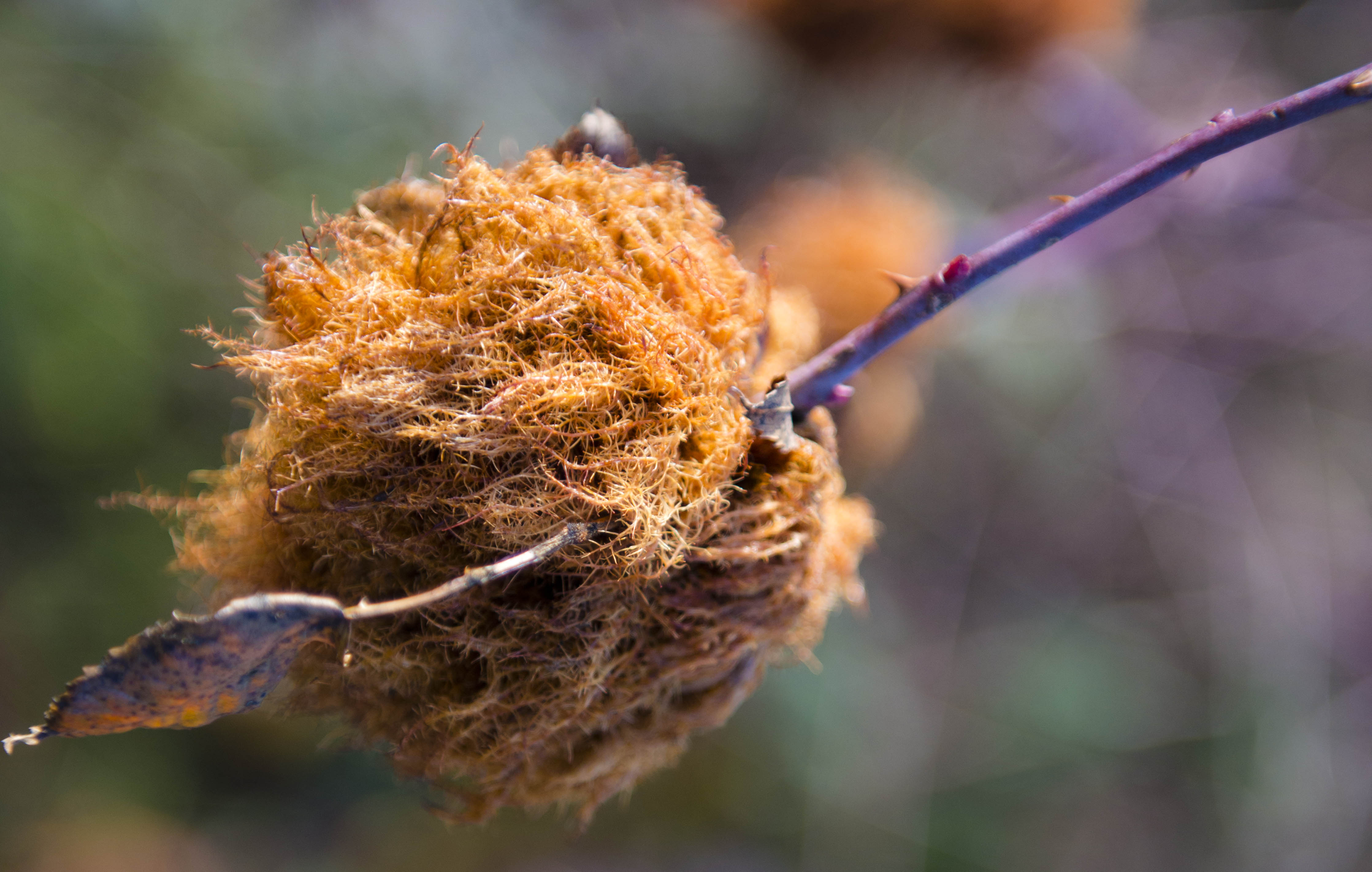 The dried and fraying husk of a seed-pod, photographed last December in a nearby hedgerow.