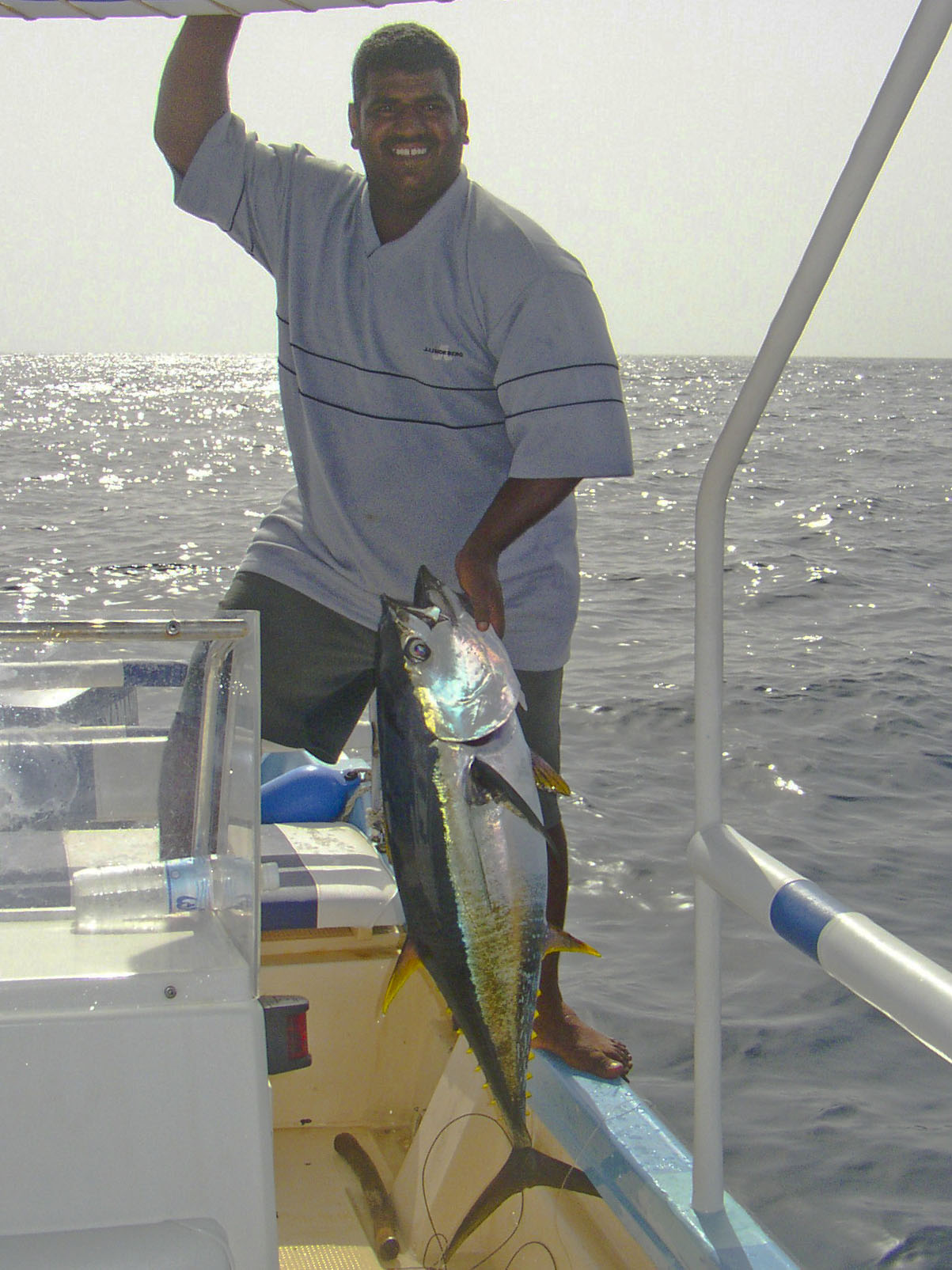 This is from a few years back. On a trip to Oman, we went out to to look for dolphins. Khaled didn’t waste the opportunity to catch his dinner.