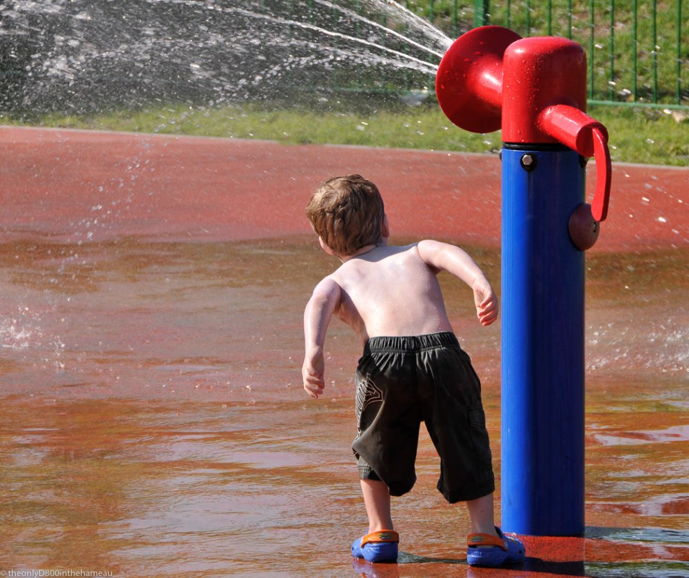 There is certainly an element of blue in this image, but at least it’s not in the water (and there’s plenty of that). This was taken a few years ago at the Corniche Water Park in Abu Dhabi and shows one of my twin grandsons being fascinated by the jets coming from one of the water cannons.