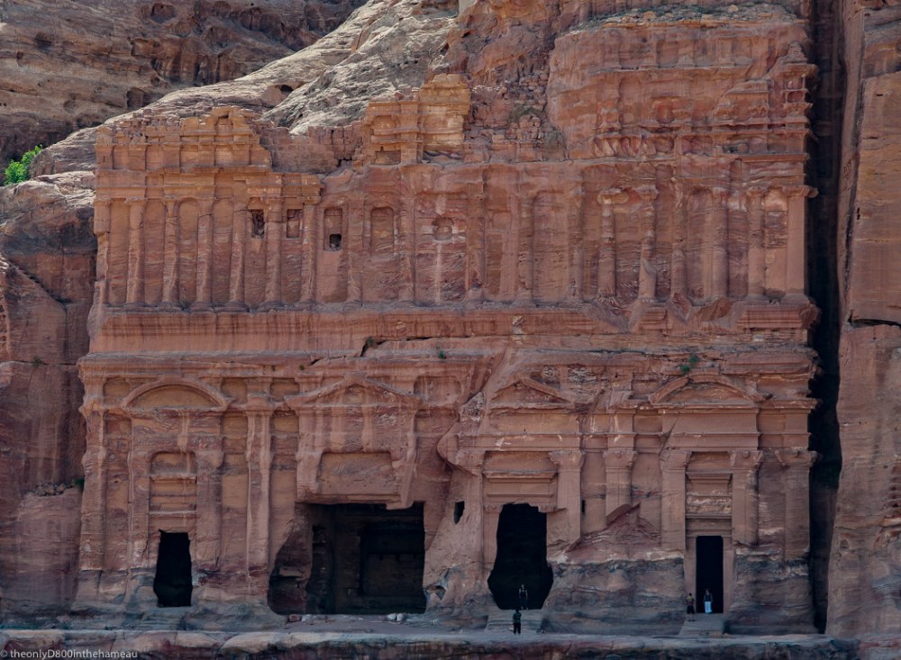 The human figures at bottom right give some idea of the monumental scale of the ruined city of Petra.