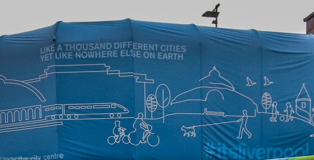 Last time I was back there I spotted this, covering some scaffolding in the city centre, so I grabbed a quick photograph with my mobile phone.