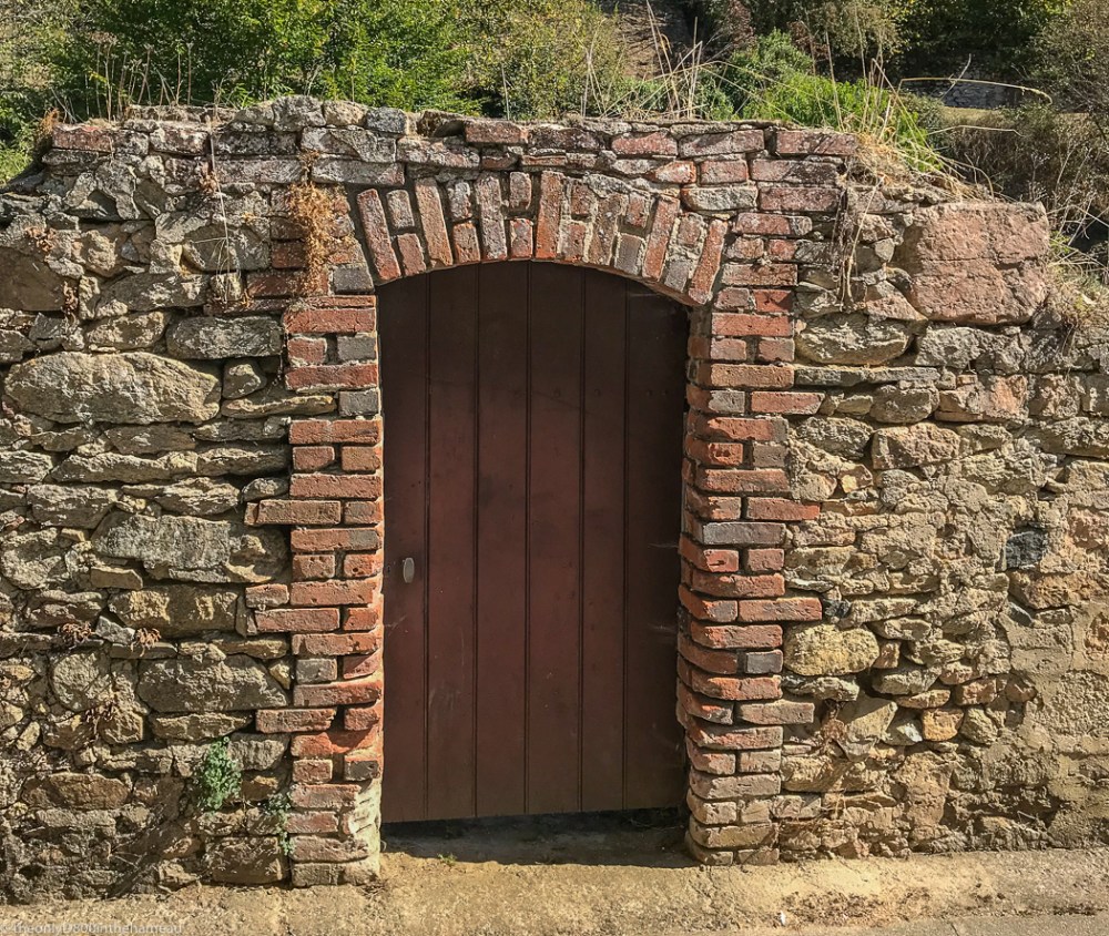 I love the weathered wooden doors as well as the door set into the brick arch.