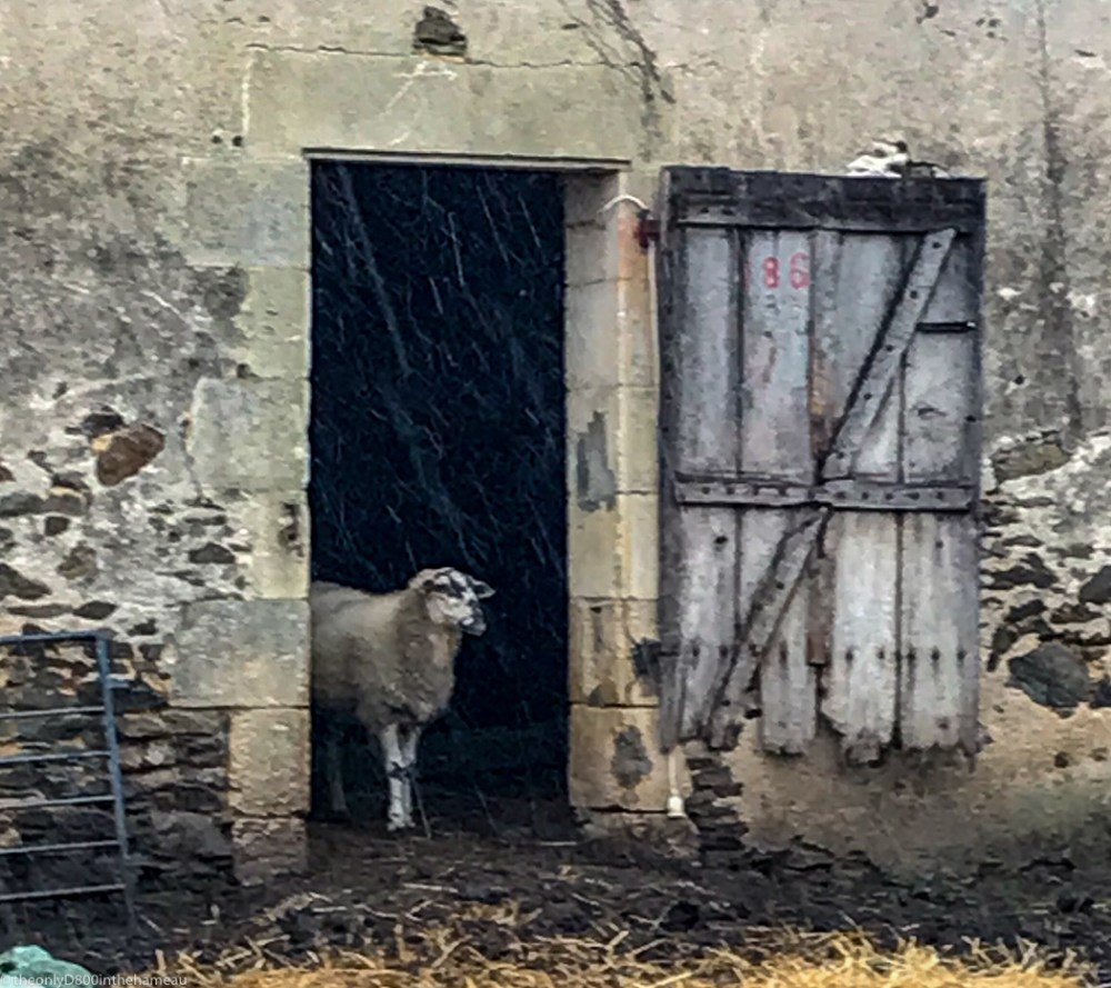 If, like us, you spent many years living in Scotland, you couldn’t help but be very happy that, a mere twenty minutes drive away, there is a Scottish butchers shop, attached to a farm. They have cattle, pigs and sheep, all of which go into their exceptional products. How two people manage to run the farm and the shop pretty much on their own, I have no idea, but they do, even if sometimes the animals stray from their allotted locations into an old building with an eye-catching old door.