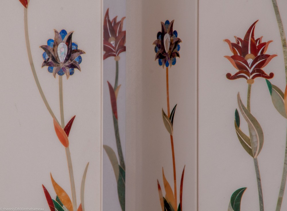 The well-known phrase ‘smooth as monumental alabaster’ (from Shakespeare’s ‘Othello’)came to mind when I saw that. I’m not sure whether these mosaic flowers are set in alabaster or ‘just’ marble, but I do know that it’s part of the ornate decoration of the Sheikh Zayed Grand Mosque in Abu Dhabi and that it’s very smooth.
