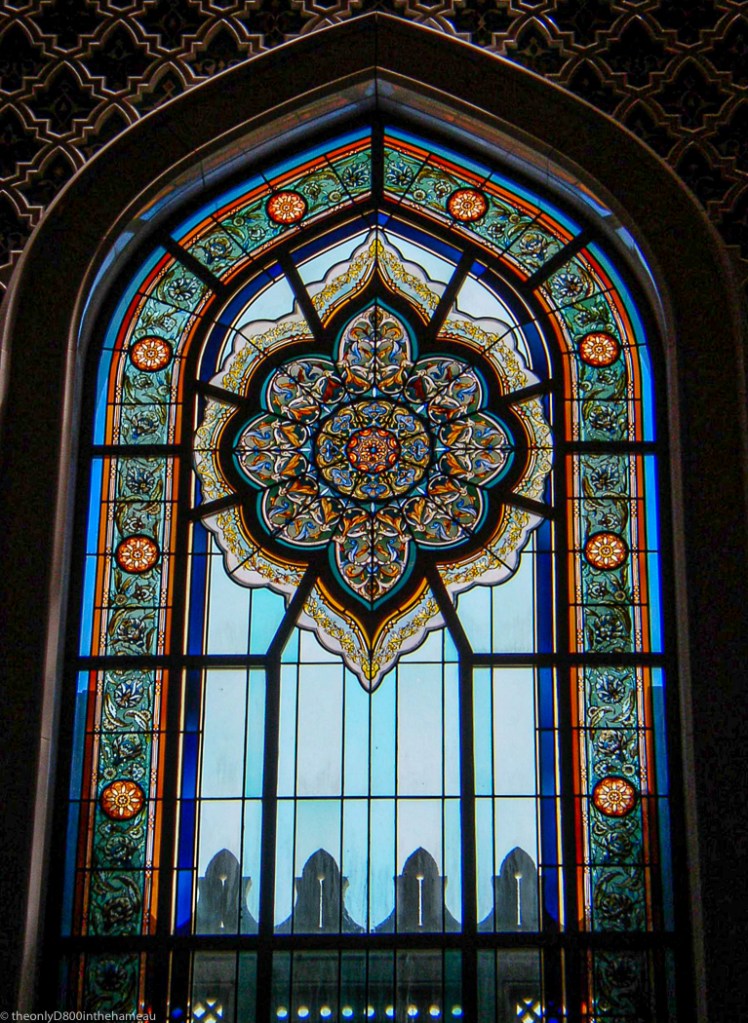 The Grand Mosque in Muscat, the capital of the Sultanate of Oman, features many stained glass windows. In accordance with Islamic tradition, images are geometrical and abstract rather than featuring depictions of the human form.
