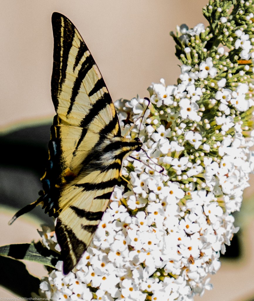 This black and white butterfly was happy to feast on the white buddleia bush that grows in our garden.