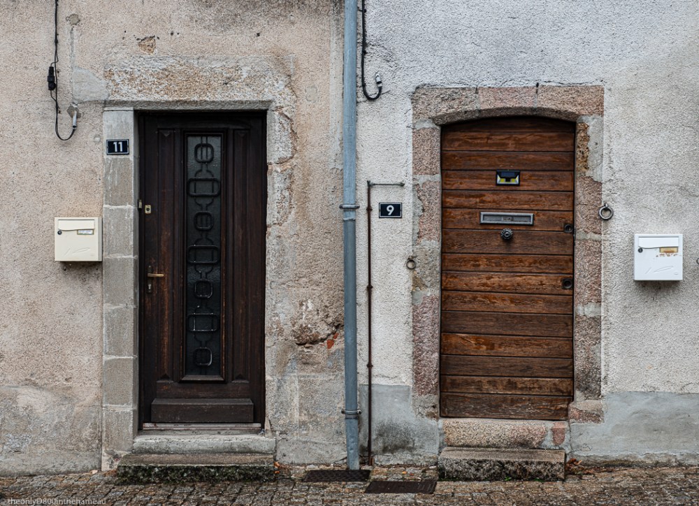 A couple of examples of doors with their surrounding shutters, the first in rather better nick than the second: