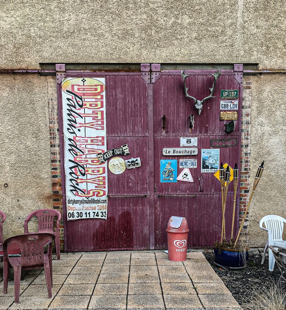 No, it’s not that Route 66. This one is a biker hotel and bar in the nearby village of Bussière-Poitevine. Turn off the road through the village into a small courtyard and you’ll find this small collection of doors.
