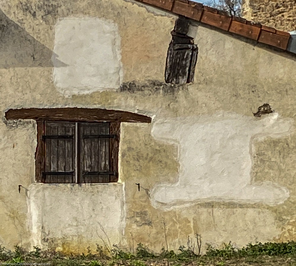 This outbuilding of one of the usually unoccupied houses here in Tranquility Base has seen a lot of re-purposing over the years. The shuttered window obviously used to be a door and there are the phantom vestiges of two other windows.