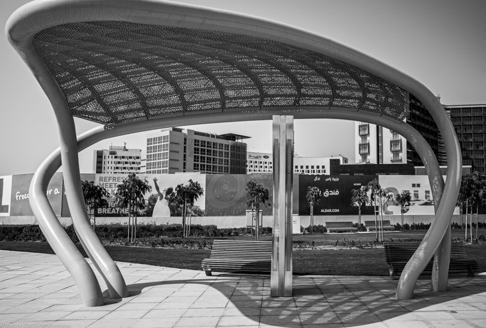 Most benches in Abu Dhabi tend to come with an accompanying shelter to provide some shade – essential when the sun beats down all day and air temperatures routinely exceed 40 degrees.