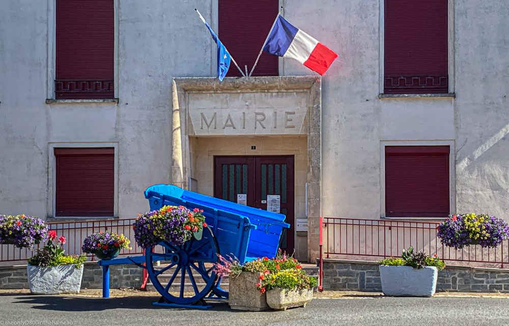However, I think this image of a brightly painted old-fashioned cart on display outside the Mairie gives a decent idea of my current cultural circumstances.