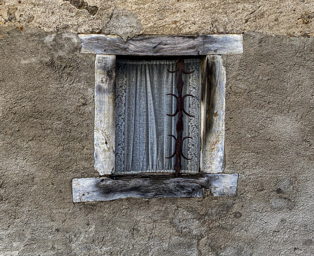 Hidden away in a back street of the nearby town of Bellac. The building seems to be a workshop of some type, but there’s no getting away from those lace curtains.