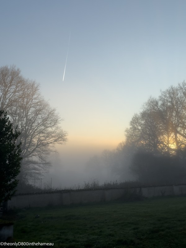 I took this photo as the sun set on New Year’s Eve. Darkness is falling on 2024 but high in the sky an aeroplane is heading south, to a hopefully brighter future.