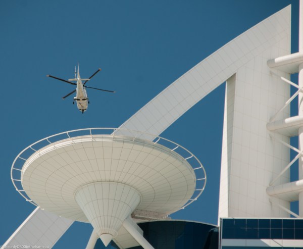 By happy chance, this helicopter was about to touch down on the helipad at the top of the Burj al-Arab hotel in Dubai.