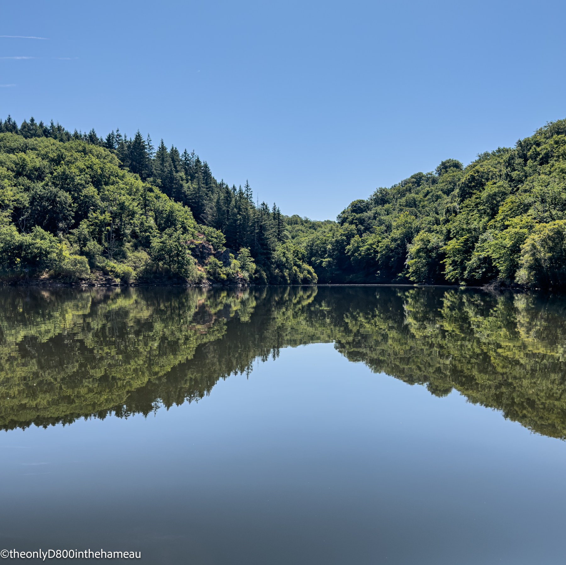 The photographer’s dream scenario: a leading line, reflections and red foreground objects. An idyllic summer’s day on the River Creuse at Crozant. Cellpic Sunday 13 July 2025