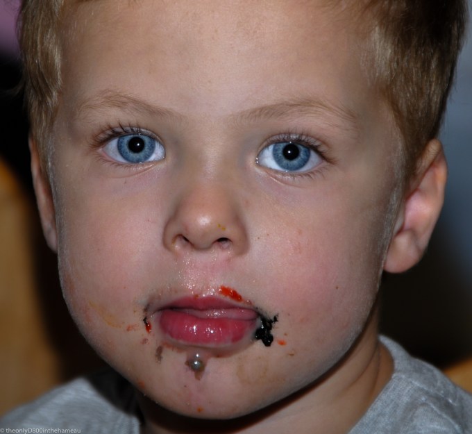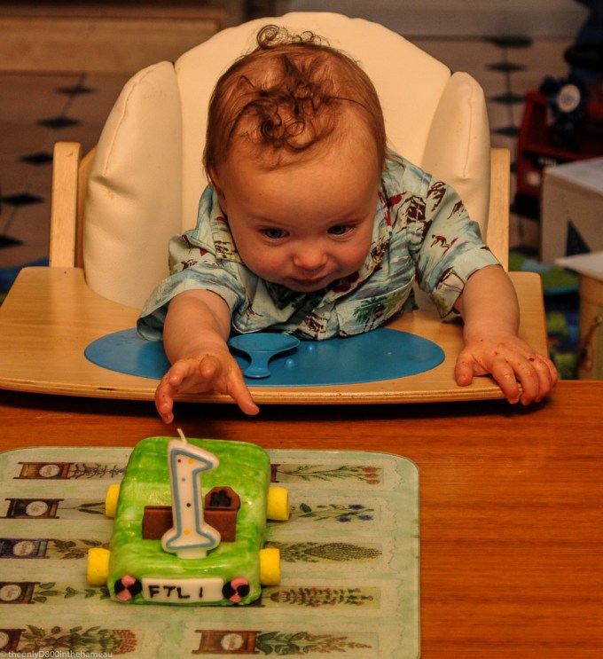 From a photographic perspective you can debate whether it’s the baby or the cake that’s the subject of this picture, but there’s only one subject that my grandson was interested in on his first birthday.