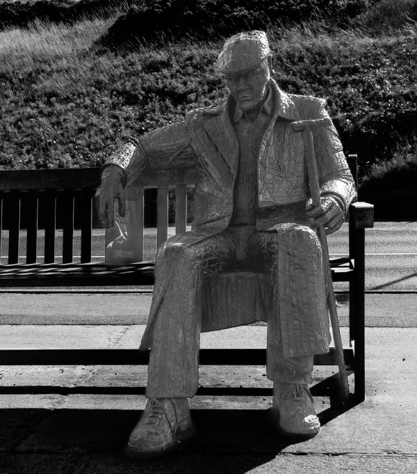 This is ‘Fred’, a sculpture who sits gloomily on a bench, looking out to sea, in the town of Scarborough. In the county of Yorkshire, where he finds himself, he would probably be described as ‘a reet miserable bugger’.