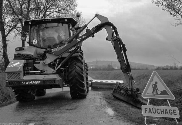 Two or three times a year the local mairie sends out one of its fleet of tractors to cut the grass and trim the hedges that bound most of the minor roads in the commune – including the one that passes through our little hamlet. This is known as the ‘fauchage’ – not to be confused with ‘chauffage’, whch means heating.