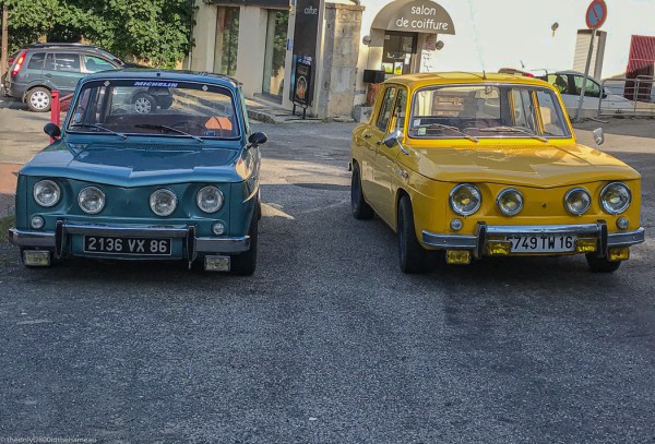 How thoughtful of the owners of these two old cars not only to park side-by-side outside the village shop, but also to choose complementary colours.