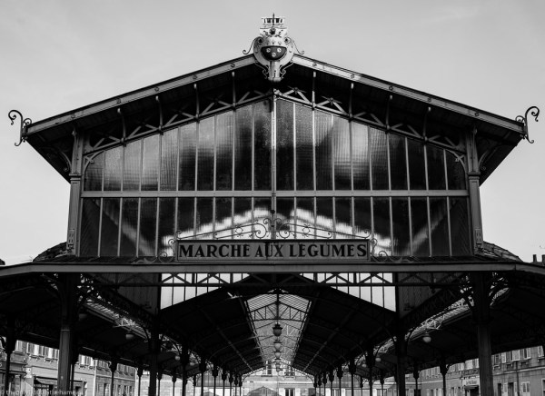 The glass roof of the covered open-air vegetable market in the city of Chartres is replete with symmetrical lines and angles to meet Cee’s theme for this week (and works particularly well in monochrome).