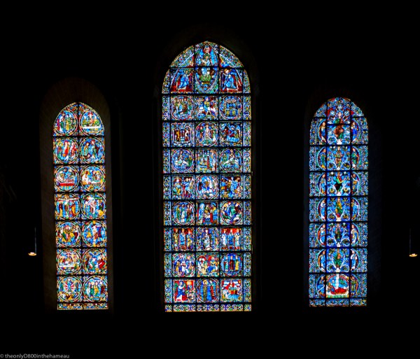 Another impressive triptych of intricate stained glass in the mighty Cathedral at Chartres.