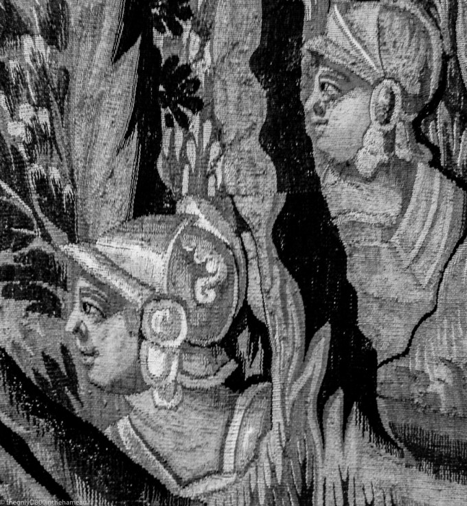 So this is not a macro photograph, but rather a detail from a tapestry in the Cité International de la Tapisserie museum in Aubusson. The monochrome treatment highlights the painstaking intricacy of the handwork that went into creating the overall image.