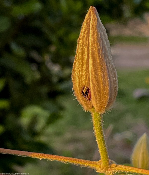 Some tiny creature obviously took a fancy to this clematis bud before it got the chance to flower.