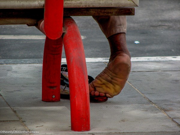 I took this photo in Dubai, many years ago now. An immigrant worker seizes a – no doubt rare – opportunity to rest and relax, sitting on a bench and removing his sandals, enjoying a quiet moment.