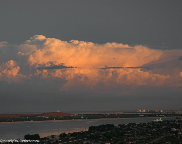 This one was floating above The Corniche in Abu Dhabi when I snapped it from the terrace of our apartment as the sun went down. Until I pulled it out of my files for this challenge, I’d never even noticed the aeroplane. I guess that makes this particular scene really unique.