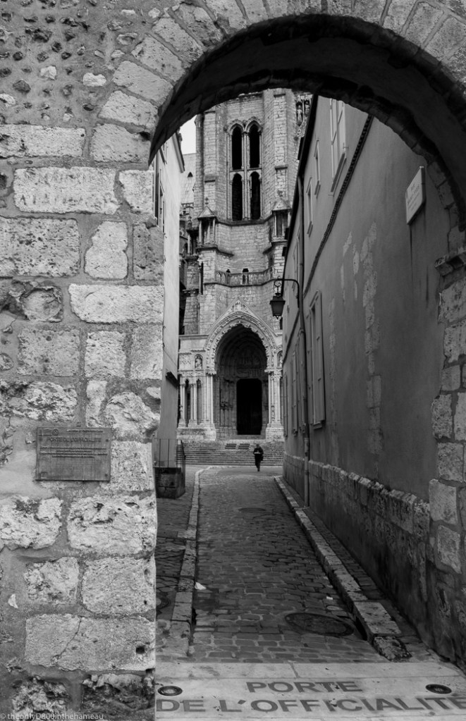 The little Rue Saint-Yves lies within the bounds of Chartres cathedral. The gateway dates from 1257. It is known as the Porte de l’Officialité because in medieval times it provided access to the Ecclesiastical Tribunal.