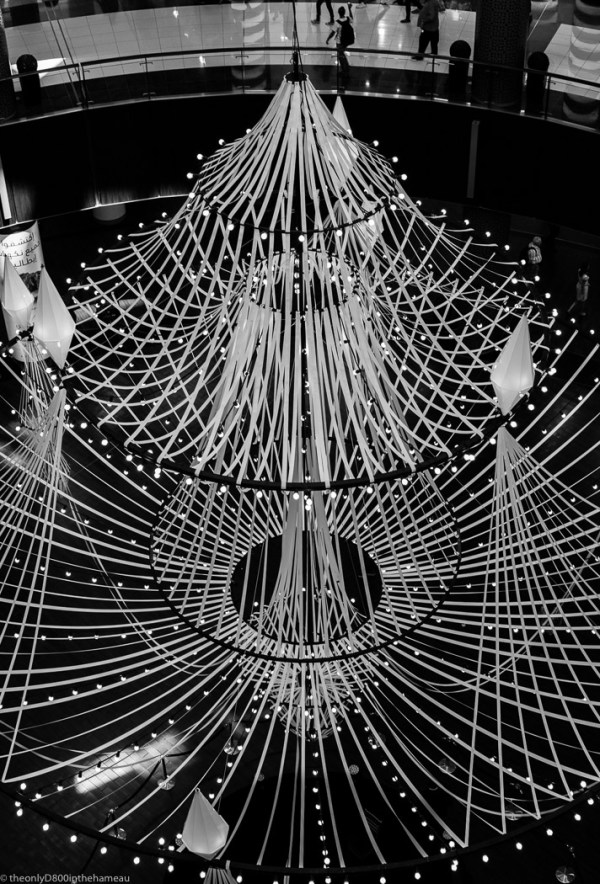 To fit this week’s theme, another image from the inexhaustible fount of photographic possibilities that is Dubai Mall. This one is a lantern, or chandelier if you prefer. I placed the camera on the floor and hovered around it protectively while the exposure was made.