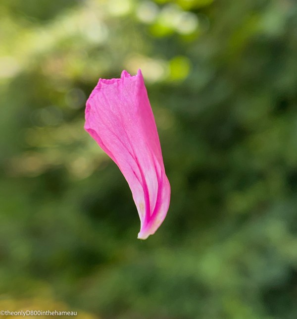 This single geranium petal looks like it is floating in mid-air, but in fact it is attached to the body of the plant by a single, gossamer-thin thread of spider silk.