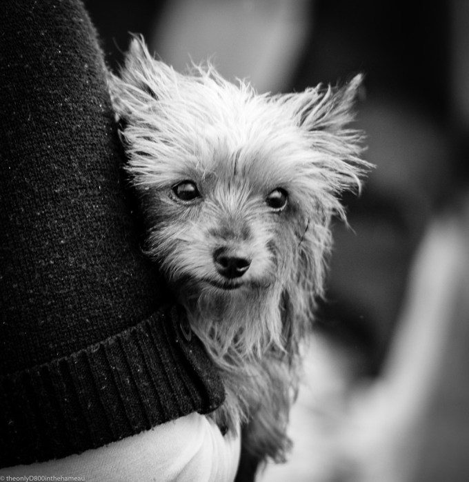 This little dog was tucked under its owner’s arm, not remotely interested in the horse-racing at the La Sagna Hippodrome, near Le Dorat.