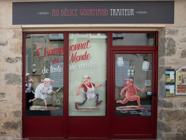 The nearby town of Le Dorat hosted the ‘Mondial de Tonte’ (that’s the world sheep-shearing championships) back in July. For such an occasion, the place was, naturally, ‘en fête’, with most shop doors and windows being decorated with amusing pictures such as this one: