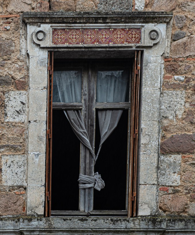 This window above the abandoned premises of a video hire shop (remember them?) in the town of Chabanais is lifted out of the ordinary by the eerie presence of an old lace curtain.
