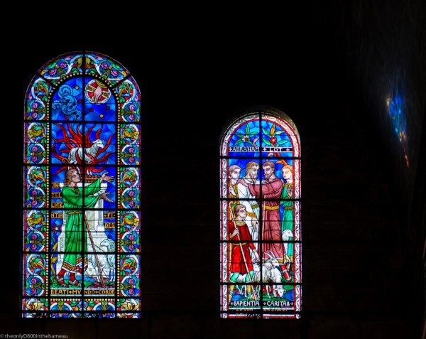 I missed out on posting a window last Monday, so to make up the shortfall here are two fine examples of stained glass, from the Cathedral of Saint Front, in Perigueux.