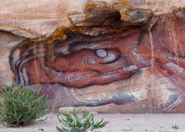 The passage of millenia has weathered the sandstone of the ancient city of Petra into some fascinating shapes and colours, including this example.