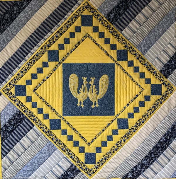 This is a detail from the centrepiece of a quilt that was shown at an Expo in Nantes a few years ago. It is to all intents and purposes entirely made up of squares and triangles.