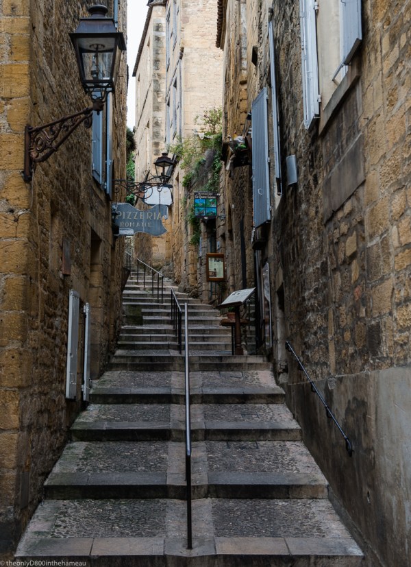 Frank’s theme for the Tuesday Photo Challenge this week is ‘hills’. The automatic response to this would be to post a landscape, I suppose. However, here’s a little hill (one of many) in the centre of the town of Sarlat in the Dordogne that just makes you want to climb it – even if it’s only as far as that Pizzeria.