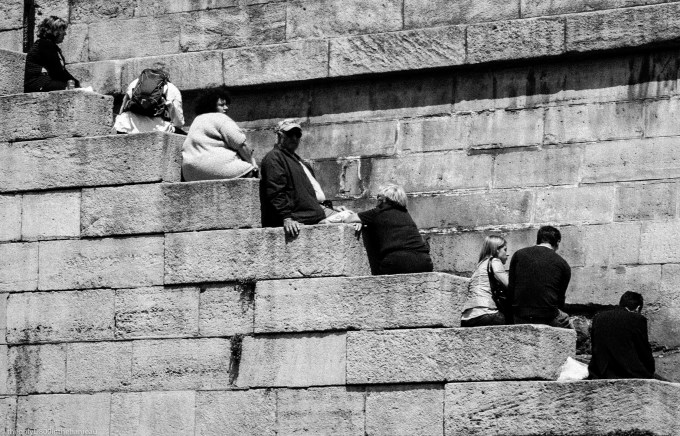 Last year we were in Paris and took a trip down the River Seine on a bateau-mouche. It was around lunchtime on a pleasant sunny day, so people came outside to eat their lunch. These particular Parisians were sitting on a set of steps that lead up from the river to the embankment.