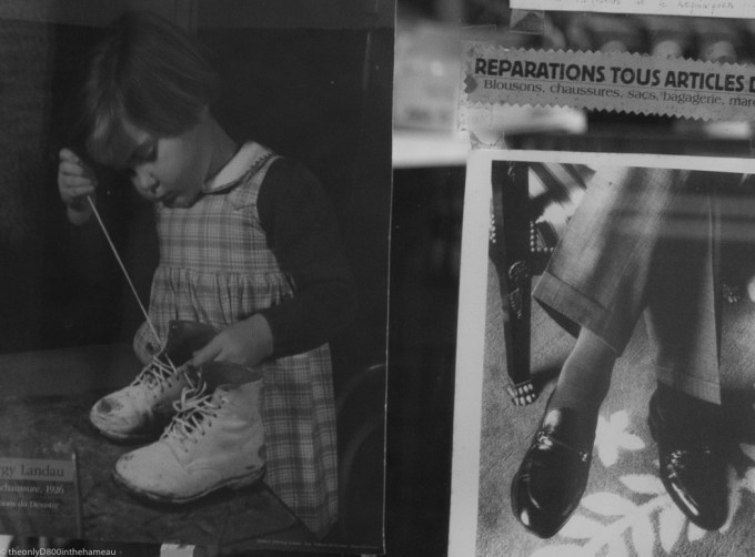 I spotted this juxtaposition of two photographs in the window of a shoe repair shop in the old part of Cahors. Footwear: the same but different.