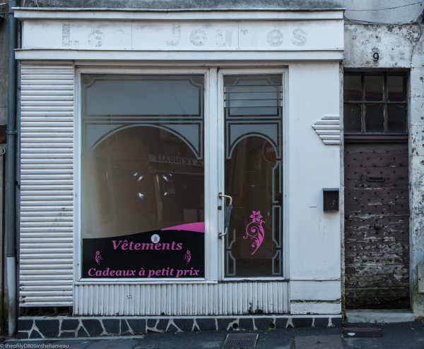 There are also plenty of empty shops optimistically displaying ‘À Vendre’ signs – as they have been for many years, to judge from the distinctly dated style of the shopfronts. Here are a couple of examples: