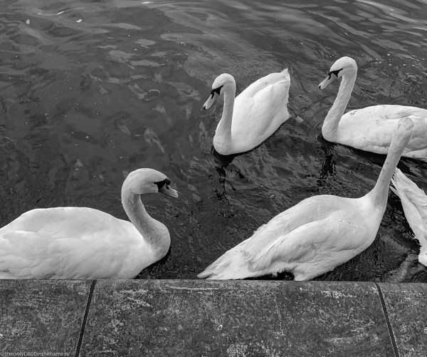 This week, I present a rare example of me multi-tasking. The image of these swans was captured by the lake next to Linlithgow Palace and it fulfils the criteria not only for Cee’s Midweek Challenge, where the prompt was ‘white’, but also her Black & White Challenge, for which the theme was ‘birds’.